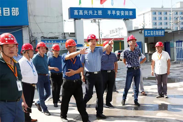金秋時(shí)節(jié),丹桂飄香。二〇一九年九月六日下午,黃山市人民政府副秘書長程亞東及市生態(tài)環(huán)境局、市公安局、市交通運(yùn)輸局等有關(guān)部門主要領(lǐng)導(dǎo)在市住房城鄉(xiāng)建設(shè)局副局長徐樹紅、建管處副主任張先波的陪同下,風(fēng)塵仆仆蒞臨黃山市建工集團(tuán)承建的金太陽黎陽宸府項(xiàng)目工地考察調(diào)研。