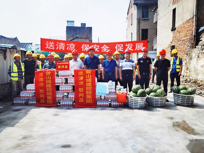 烈日炎炎,氣溫居高不下。為保障項(xiàng)目職工安全健康權(quán)益,確保項(xiàng)目安全生產(chǎn)平穩(wěn)推進(jìn),8月10日上午,黃山城投城建控股有限公司總經(jīng)理汪國(guó)文等一行赴寧國(guó)市河瀝文化街區(qū)EPC項(xiàng)目工地開展走訪調(diào)研暨“夏送清涼”慰問活動(dòng)。黃山建工集團(tuán)股份有限公司董事長(zhǎng)項(xiàng)端陽(yáng)、總經(jīng)理葉金發(fā)、副總經(jīng)理吳學(xué)武陪同調(diào)研慰問。